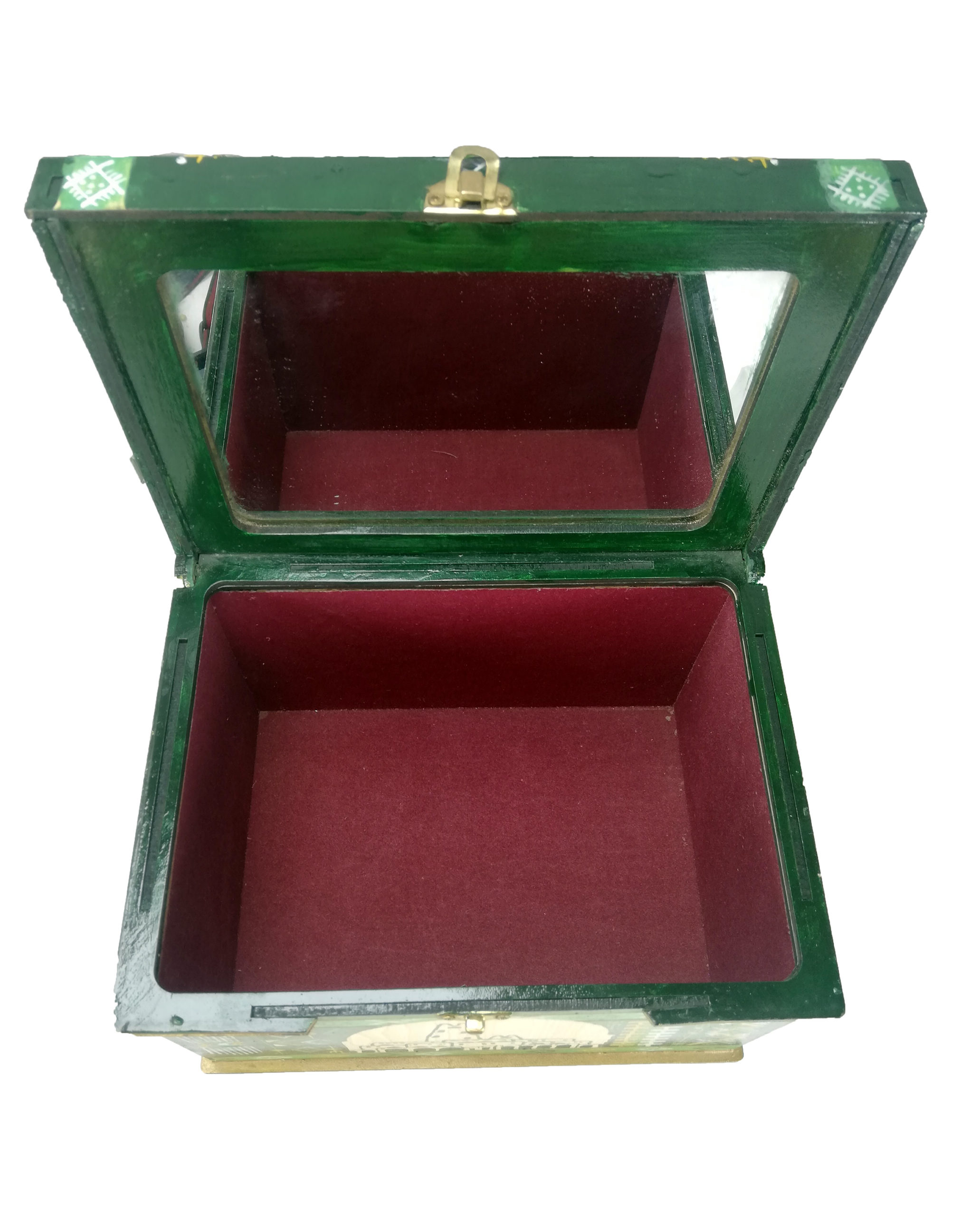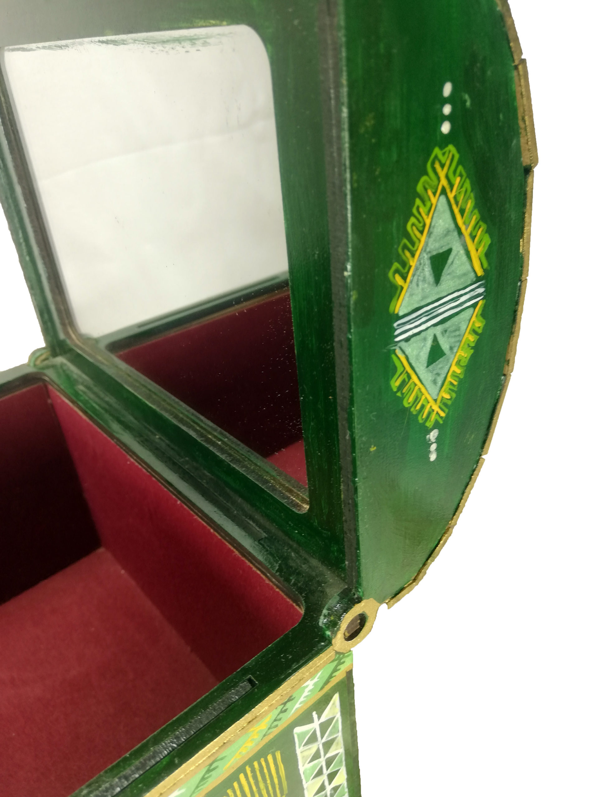 Coffre à bijoux fait main traditionnel avec un miroir à l’intérieur et un jolie design artisanal à l’extérieur 18.5*14 cm