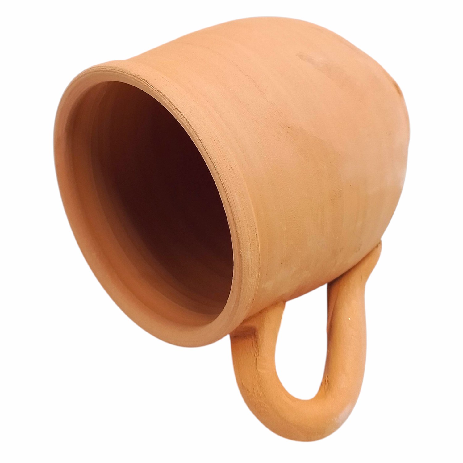Cette tasse se distingue par son aspect brut et naturel. Sa texture légèrement granuleuse et sa couleur terre cuite chaleureuse apportent une touche rustique et minimaliste à votre table. On peut voir les traces délicates du tournage à l’intérieur, preuve d’une fabrication artisanale unique.